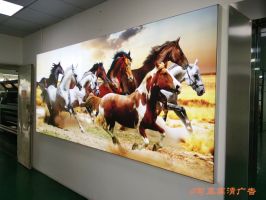 第四,在面积及清晰度方面:喷绘可出的面积大,一般机器3.2米宽,也有5米的宽度,但画面精度一般;写真在面积大的广告则需要拼接,画面清晰精度比喷绘高。